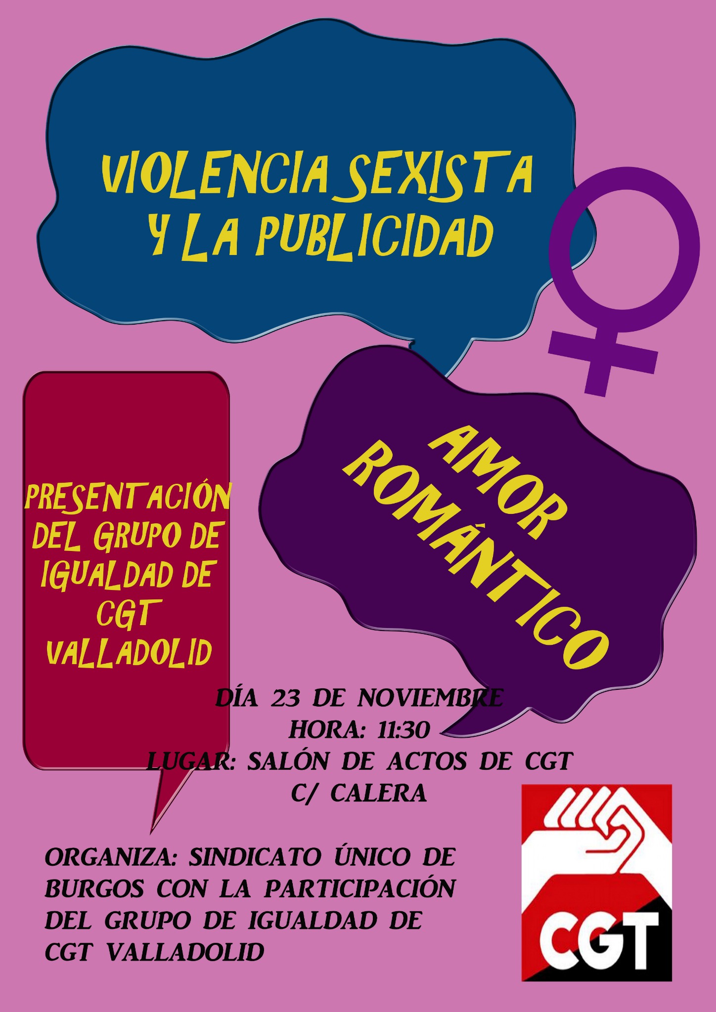 El próximo sábado 23 a las 11:30h vamos a realizar la siguiente actividad con motivo del 25 de noviembre, día internacional contra las violencias machistas, junto al grupo de igualdad de CGT Valladolid: