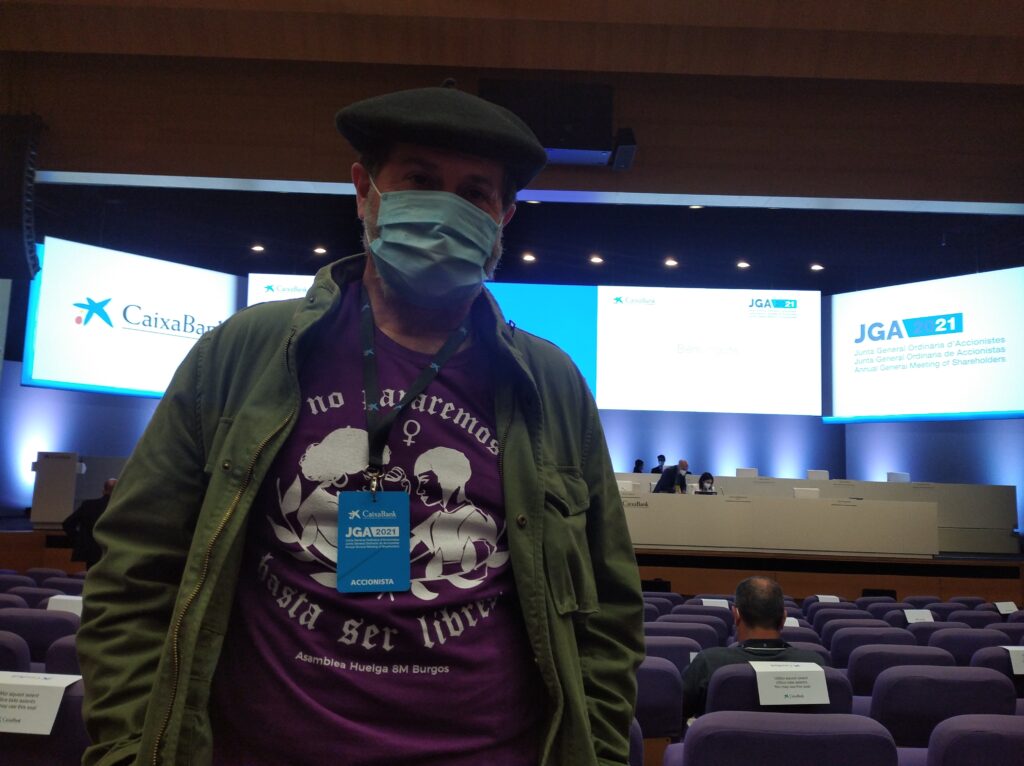 Soy trabajador de CaixaBank, afiliado y delegado de la CGT (Confederación General del Trabajo). Tomo la palabra como tal, más que como accionista, pues estoy facultado gracias a la generosidad de otras compañeras, y compañeros, que han delegado en mi el voto que confieren sus acciones, y esta palabra es la suya también. También la voz de quienes aquí no tienen voz.