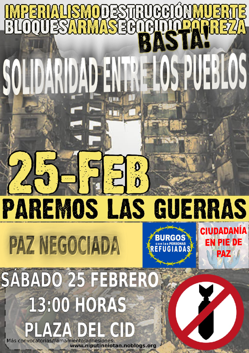MANIFESTACIÓN SÁBADO 25 - PAREMOS LAS GUERRAS – 13:00 HORAS – PLAZA DEL CID - BURGOS