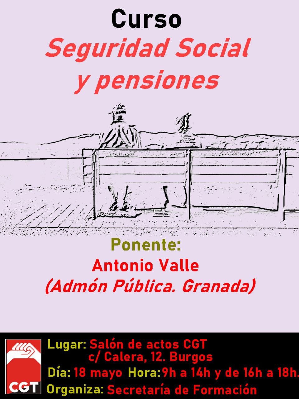 En el marco del plan de formación descentralizada de la Confederación, Antonio del Valle, compañero de la administración pública en Granada, se acercará a Burgos para ofrecer a toda la afiliación esta actividad formativa, cuyo objetivo es ofrecer información comprensible y fiable acerca de las perspectivas a largo y corto plazo del sistema de protección social y en especial de las prestaciones sociales a las que se puede aspirar; así como adquirir los conocimientos, habilidades y experiencia necesarios para llevar a cabo la actividad sindical en los centros de trabajo.