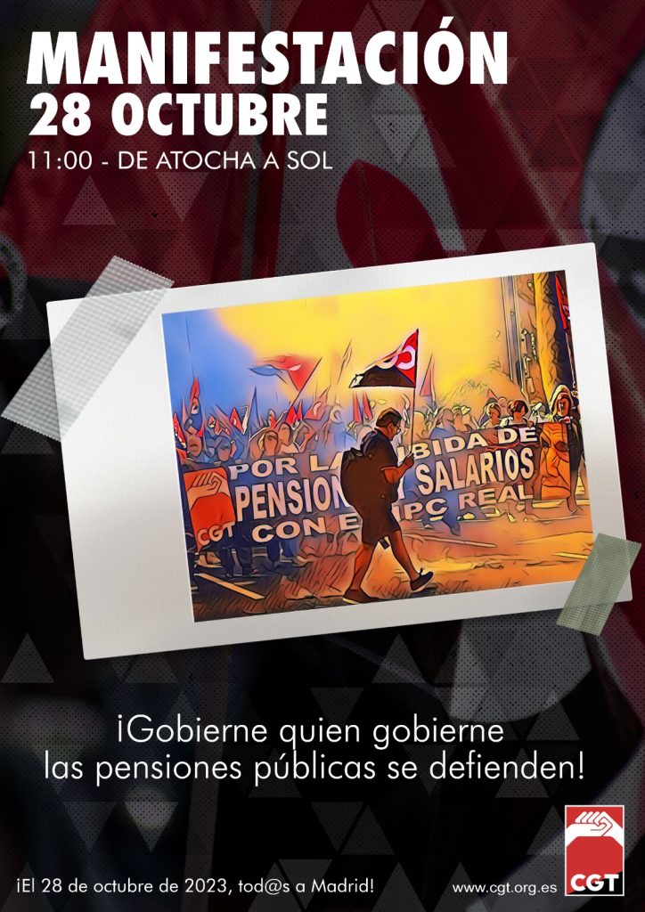 Defendamos lo público y social, defendamos las pensiones suficientes. El 28 de octubre volvemos a ocupar las calles de Madrid.