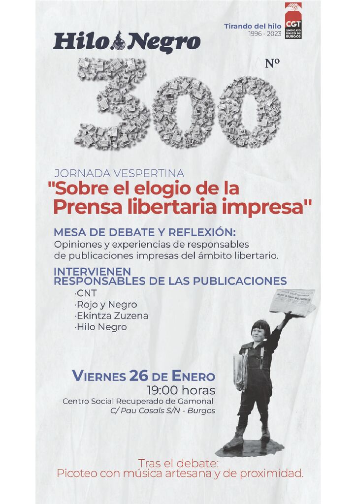 Con motivo de la celebración de la edición del n.º 300 del boletín informativo del Sindicato Único de Trabajador@s de Burgos: "Hilo Negro"