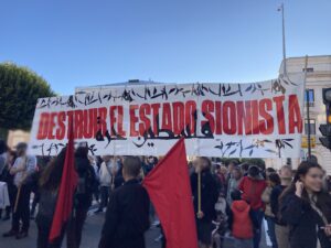 Desde que se recrudeció la masacre en Gaza por parte de Israel, hemos sido testigos de multitud de concentraciones, actos, manifestaciones y acampadas en solidaridad con Palestina convocadas con un solo objetivo: el cese de la complicidad de nuestras instituciones y gobiernos con el genocidio del pueblo palestino y la ocupación de su territorio. Esta reivindicación ha chocado de frente con un Gobierno español impasible e indiferente. La actuación tanto del actual gobierno del PSOE y Sumar, como de los anteriores gobiernos, está siendo vergonzosa: no se han aplicado sanciones de ningún tipo al comercio con el Estado sionista, la embajada española en Tel Aviv funciona con completa normalidad y no se ha expulsado a la embajadora de Israel en el Estado español. Además, lo que es mucho más alarmante, se ha intensificado la compraventa de armamento a Israel incluso después del 7 de octubre, participando así en esta nueva fase del genocidio contra la población en Gaza.