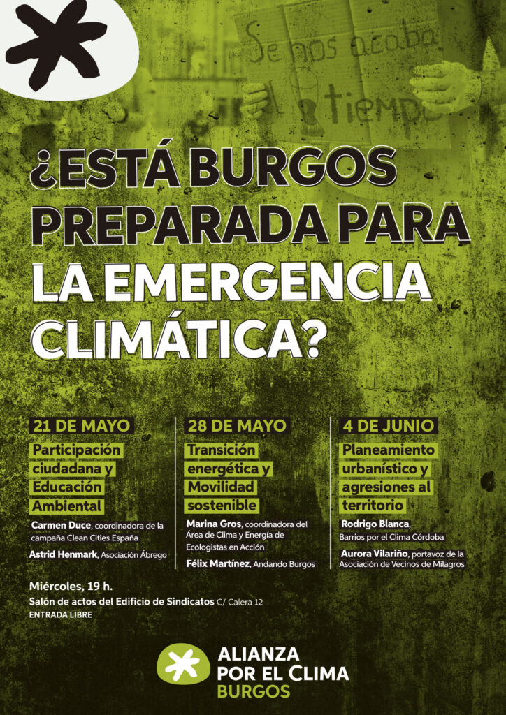 Ciclo de charlas para debatir sobre si la ciudad de Burgos está preparada para la emergencia climática, organizadas por Alianza por el Clima Burgos, de la que forma parte el Sindicato Único de Burgos de la CGT