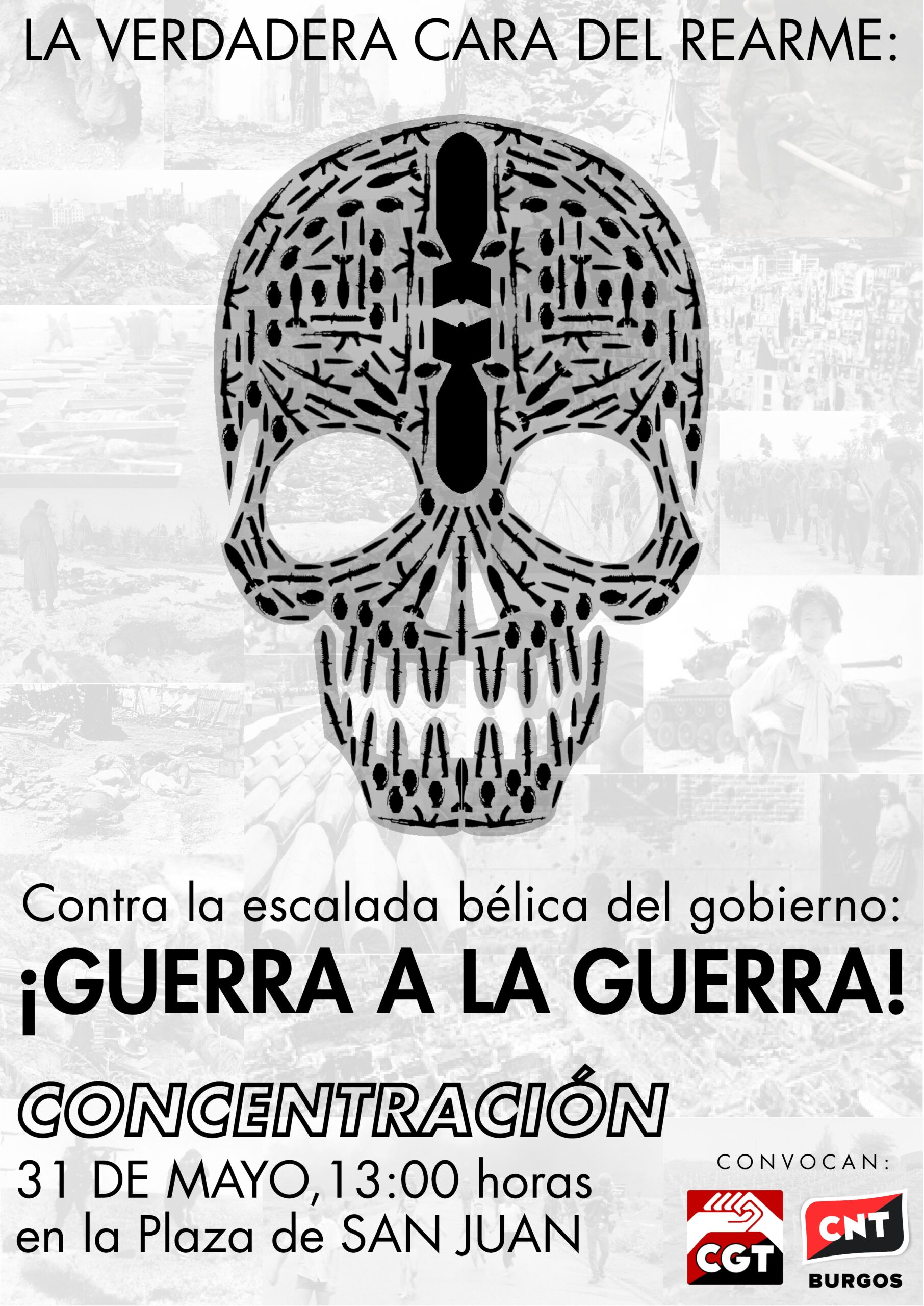 Predican voces agoreras que la guerra ya está aquí, y no les falta verdad: es a solo 20 kilómetros de aquí, en el Páramo de Masa donde ahora mismo se fabrican los explosivos que arrasan ciudades y sesgan vidas de inocentes en docenas de países. Es aquí, en Burgos, donde la patronal ya se congratula de los pingües beneficios que ofrece esta escalada bélica. Es de nuestro trabajo de donde sale el dinero para financiar su guerra.