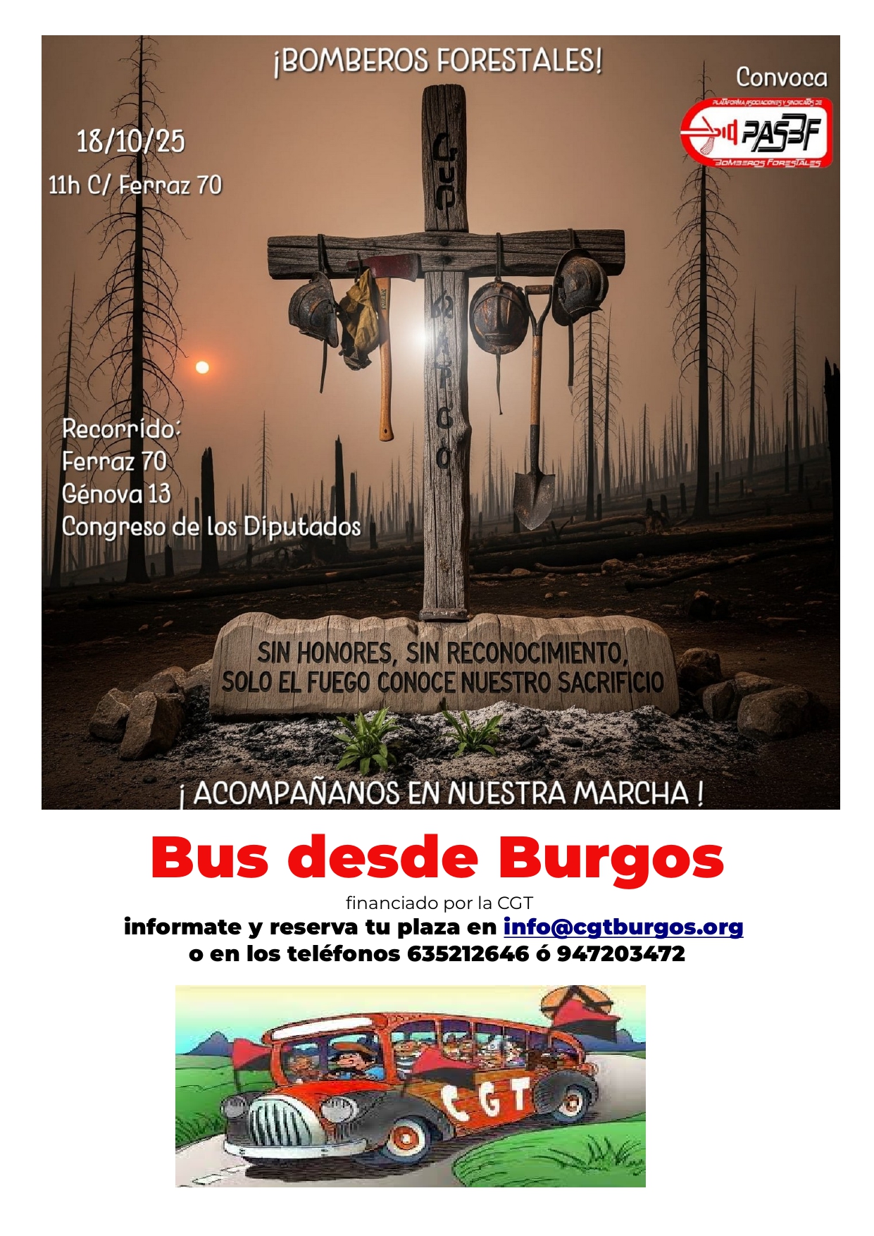 CGT FLETA AUTOBUSES PARA ACUDIR A MADRID A LA MANIFESTACIÓN CONVOCADA POR LA PLATAFORMA DE ASOCIACIONES Y SINDICATOS DE BOMBEROS FORESTALES (PASBF), ESTE SÁBADO 18 DE OCTUBRE