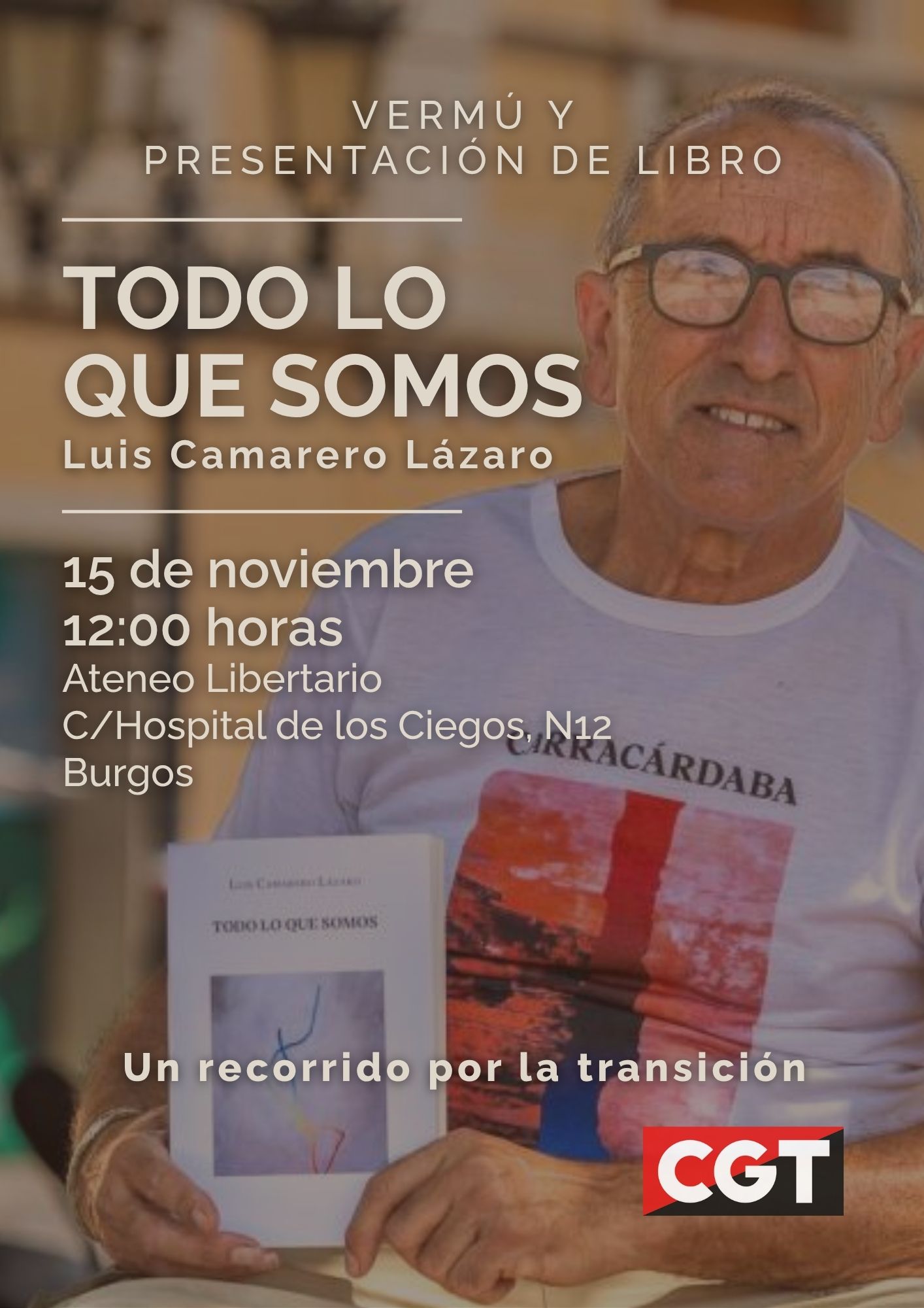 Luis es un histórico militante de CGT, originario de Segovia pero actualmente en Menorca. Su primera novela y esta que viene a presentarnos recorren tanto la memoria personal y familiar del autor como la memoria histórica y militante de nuestro país, de la que ha sido no sólo parte activa sino atento observador y defensor sin descanso de su preservación.