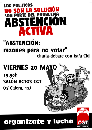 Viernes 20 mayo, charla-debate: «ABSTENCIÓN: razones para no votar», con Rafa Cid