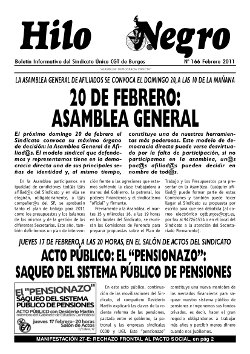 Boletín Informativo del Sindicato Único CGT de Burgos. Nº 166. Febrero 2011 “ASAMBLEA: DEMOCRACIA DIRECTA”