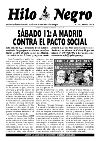 Boletín Informativo del Sindicato Único CGT de Burgos. Nº 167. Marzo 2011 “REPARTO DEL TRABAJO. REPARTO DE LA RIQUEZA”