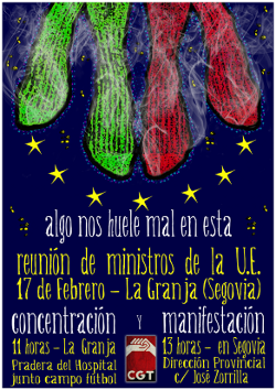 Un autobús lleno de militantes de Burgos, Aranda de Duero, Miranda de Ebro y Briviesca, acudió esta mañana temprano a La Granja, junto con compañer@s de Segovia, Madrid, Valladolid y Palencia, entre otras localidades, con motivo de la reunión de Ministros de la Unión Europea...