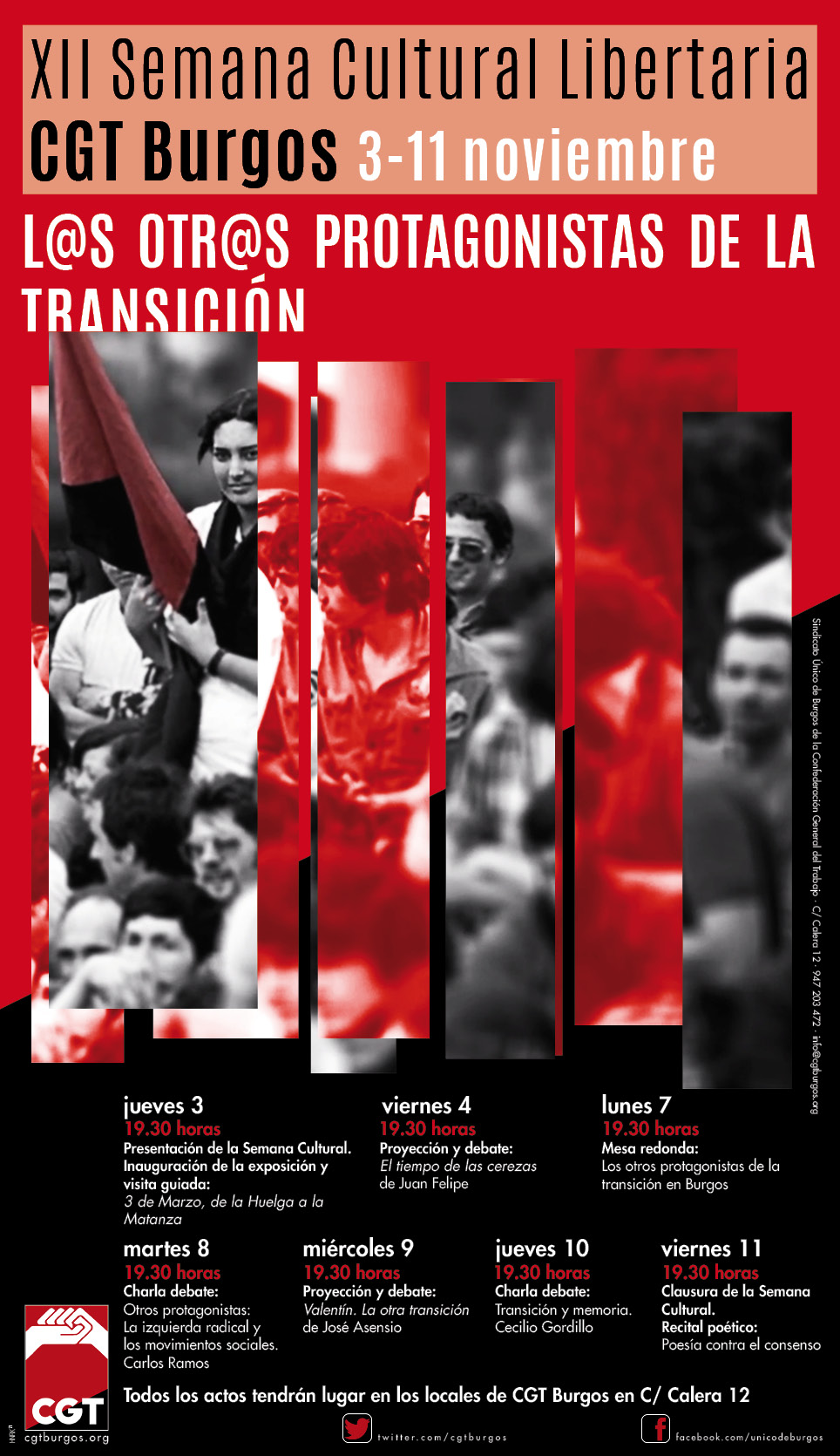 XII Semana Cultural CGT Burgos. L@S OTR@S PROTAGONISTAS DE LA TRANSICIÓN. 3-11 de noviembre