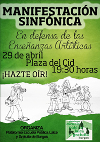 MANIFESTACIÓN SINFÓNICA EN DEFENSA DE LAS ENSEÑANZAS ARTÍSTICAS MARTES 29 A LAS 19:30.