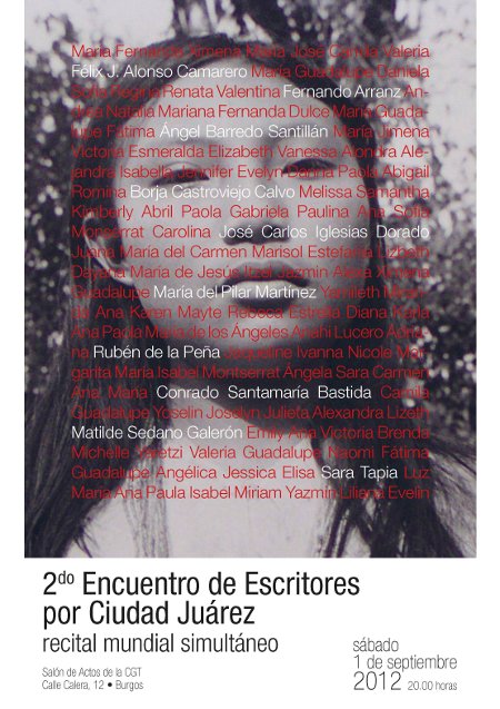 El sábado 1 de septiembre escritores y poetas burgaleses participaron en un recital colectivo y solidario que se va a celebrar en más de 130 lugares del mundo bajo el lema «Escritores por Ciudad Juárez». Burgos se suma de esta manera a la iniciativa cultural...