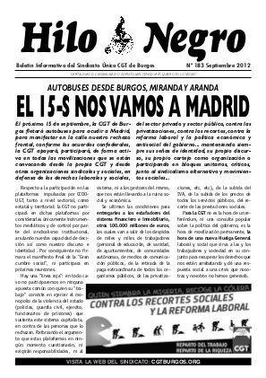 Boletín Informativo del Sindicato Único CGT de Burgos. Nº 183 Septiembre 2012 “CAPITALISMO O CANIBALISMO, O CUANTO MAS TENGO MÁS QUIERO, ES LO MISMO»